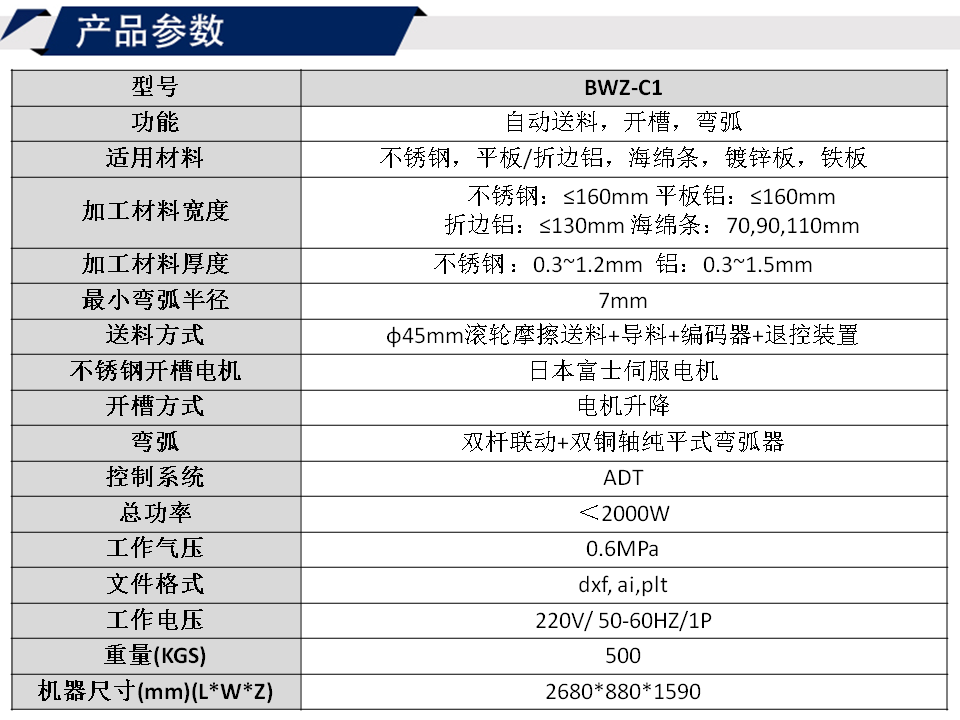 2、加工材料高度10-160mm , 鋁板厚度0.3-1.5mm ,不銹鋼0.3-1.2mm