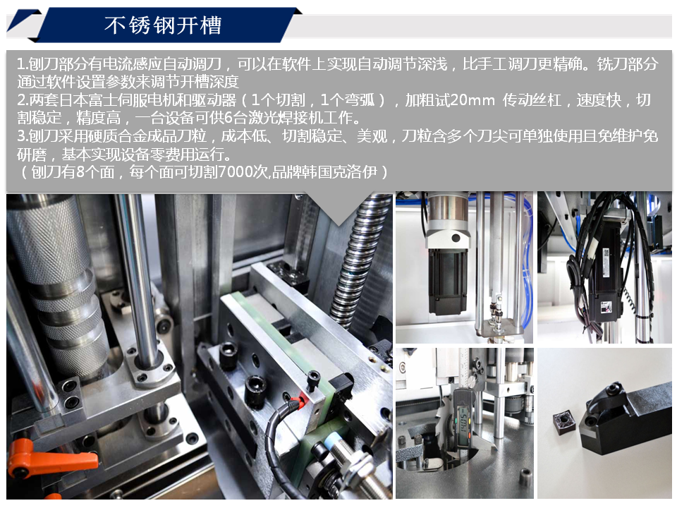 2.兩套日本富士伺服電機和驅(qū)動器(1個切割,1個彎?。?,加粗試20mm 傳動絲杠,速度快,切割穩(wěn)定,精度高,一臺設(shè)備可供6臺激光焊接機工作。