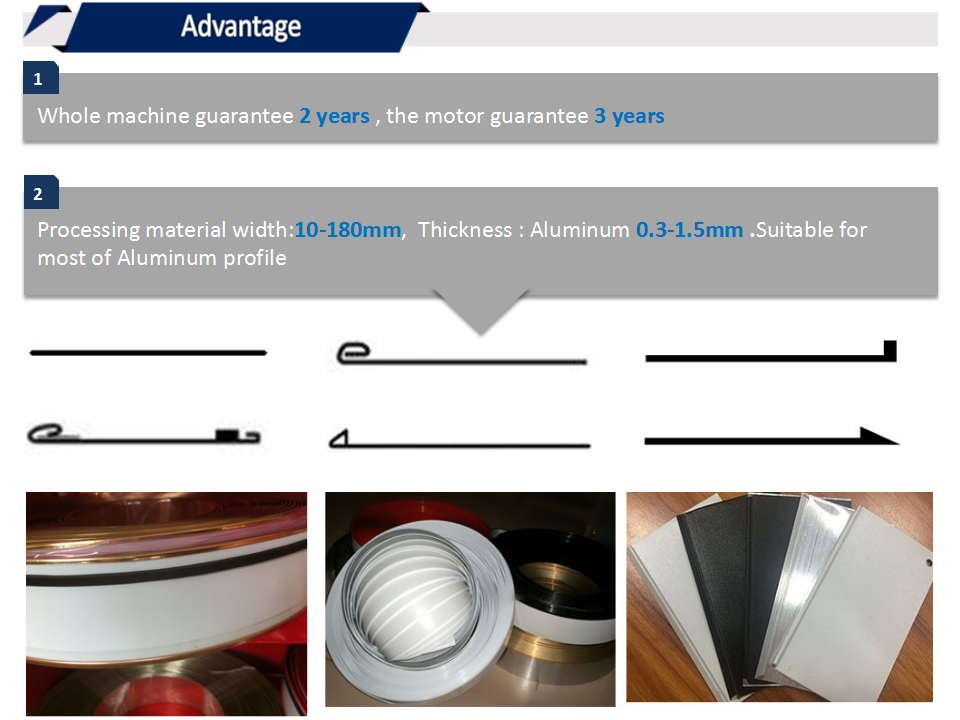 整機特點1、整機質(zhì)保兩年,電機三年。(不包括皮帶,不銹鋼切割刀頭,感應(yīng)開關(guān)和繼電器)2、加工材料高度10-160mm , 鋁板厚度0.3-1.5mm3、機器內(nèi)部的加工件和板材全部鍍硬鉻...