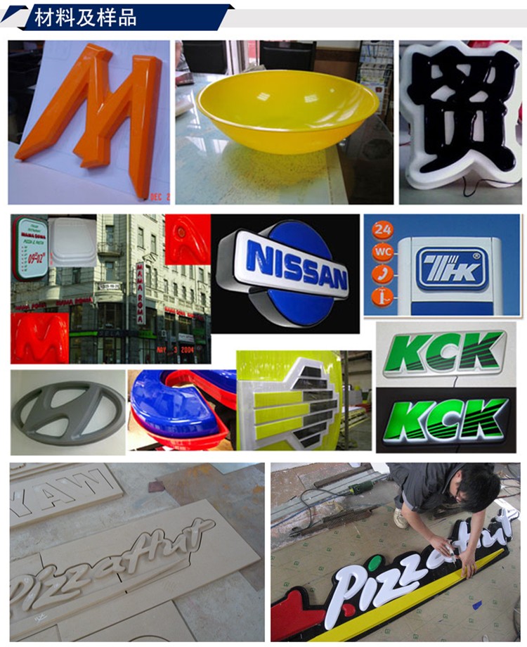 7. 適用材料:PMMA(Acrylic ), PVC,ABS,PE,PET ,Poly styrene ,poly propylene ect.