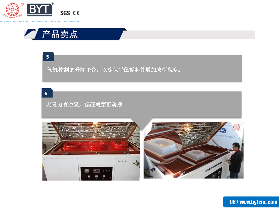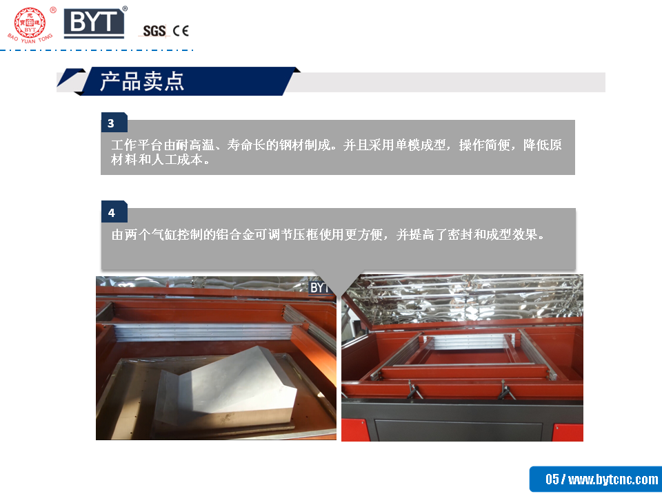 4.由兩個氣缸控制的鋁合金可調節(jié)壓框使用更方便,并提高了密封和成型效果。
